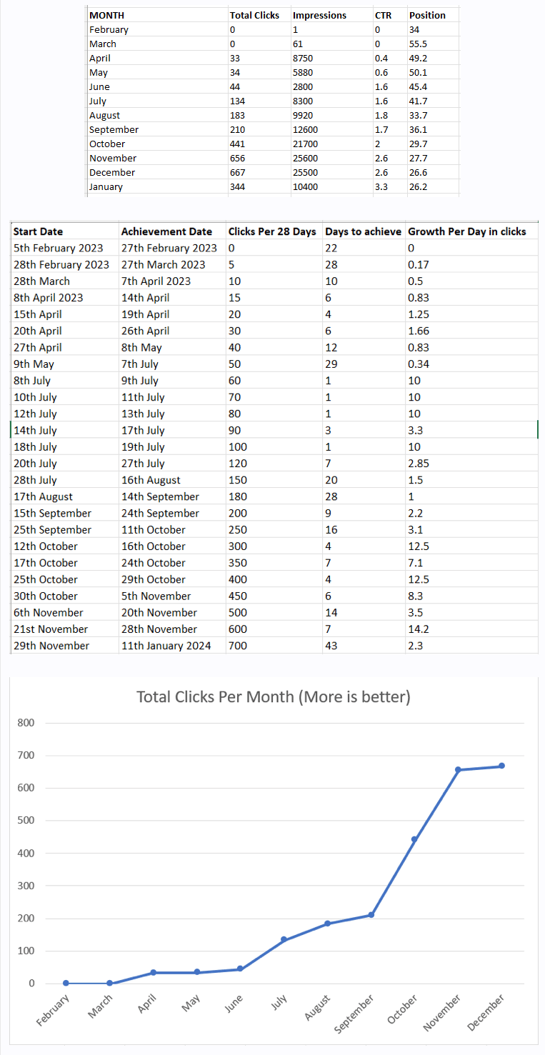 But fortunately, here are stats from another site of mine with about one year old. No links building done.